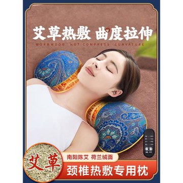 艾草頸椎專用枕頭助睡眠護頸椎睡覺艾灸電加熱敷脊椎秋冬骨頭圓柱
