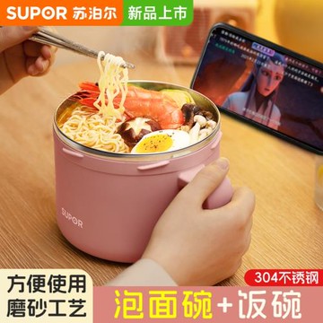 蘇泊爾泡面碗帶蓋不銹鋼飯盒上班族保溫飯盆學生食堂打飯碗飯缸