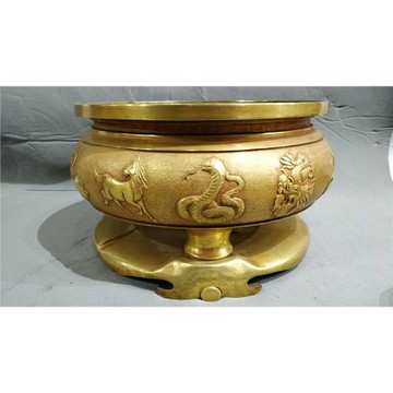 老件紫銅全鎏金宣德款高16*26公分11.8公斤十二生肖金香爐擺件