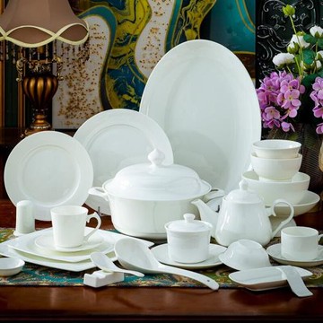 陶相惠包廂圓桌純白餐具套裝酒店擺臺公司單位餐廳陶瓷餐具高檔會