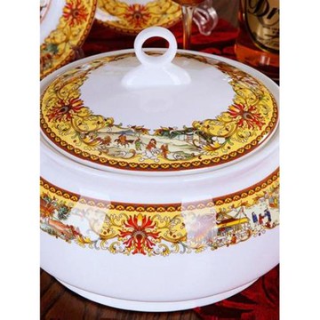 特惠促銷正宗景德鎮56頭高檔金邊骨瓷豪華版 清明上河圖餐具套裝