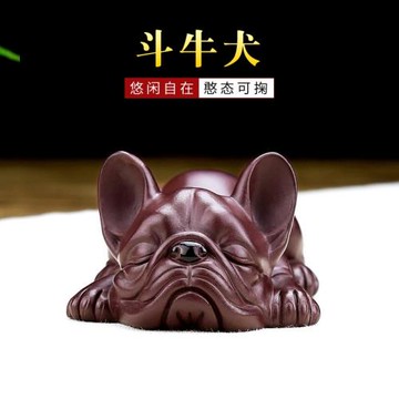 宜興紫砂茶寵名家陳洪軍全手工生肖狗斗牛犬茶玩小狗茶盤擺件可養