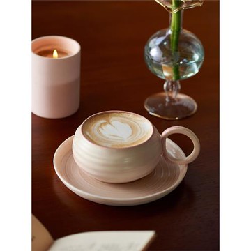 莫蘭迪 潑墨日式咖啡杯碟套裝高顏值陶瓷拉花拿鐵卡布杯子260ml