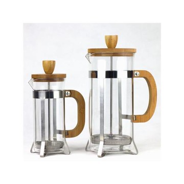 竹木蓋玻璃法壓壺家用法式濾壓耐熱高硼硅咖啡壺美式器具玻璃量杯