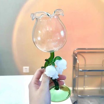 新款五朵花手工鈴蘭花高腳杯耐熱高硼硅玻璃杯酒杯果汁飲料杯