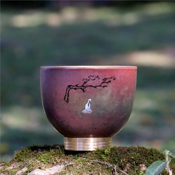 粗陶托燒煥彩菩提景泰藍禪定杯日式杯銅底品茶杯品茗杯主人杯單杯