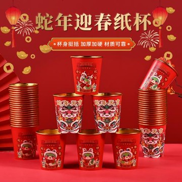 新年一次性紙杯2025年裝飾過年家用團聚用品大全蛇年春節喜慶杯子