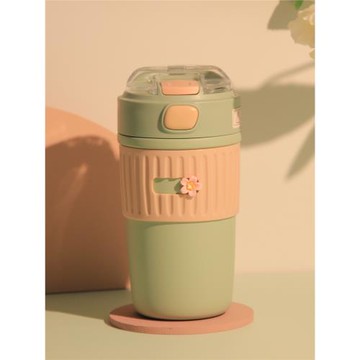 陶瓷涂層內膽雙飲口保溫杯女生高顏值咖啡杯車載便攜水杯辦公室用