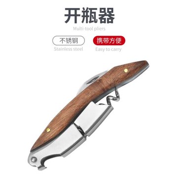 不銹鋼木柄紅酒開瓶器 多功能木柄海馬刀酒刀