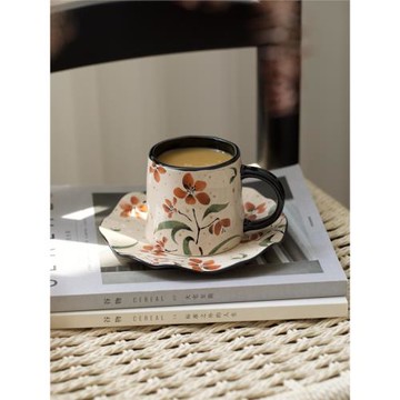 復古ins風小花 美式咖啡杯陶瓷 辦公室家用冰美式咖啡杯子 馬克杯
