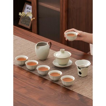 宋辭米黃汝窯功夫茶具套裝家用2025新款蓋碗茶杯高檔輕奢泡茶壺
