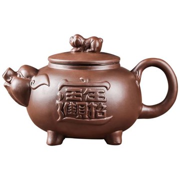 宜興紫砂壺不銹鋼過濾茶壺大容量招財豬壺茶杯套裝家用沖泡茶水壺
