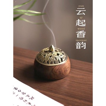 三思工房 木質線香香座新中式禪意香爐黑胡桃木香插沉香檀香熏爐