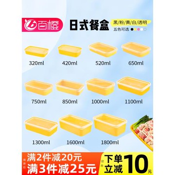百盒花長方形一次性餐盒日式外賣便當野餐塑料打包飯盒帶蓋可微波