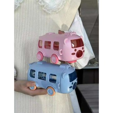 巴士小汽車吸管杯兒童創意塑料杯便攜戶外彈跳蓋水杯汽車水杯