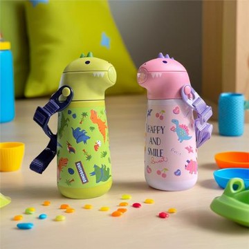 寶寶恐龍小吸管杯保溫男童316不銹鋼卡通女童幼兒園兒童進口水杯