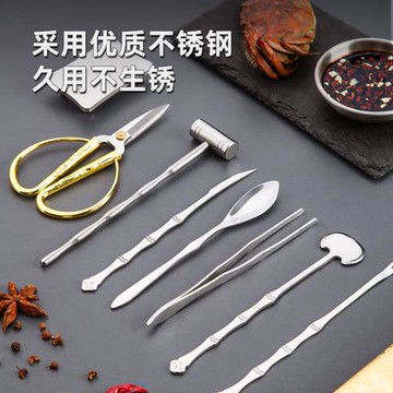 點我下載家用吃蟹工具剝螃蟹拆大閘蟹專用剪刀蟹八件禮盒蟹針蟹鉗夾套裝