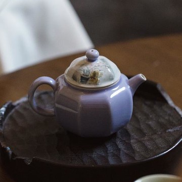 木槿紫釉下彩純手繪蘭芳八方壺手工陶瓷泡茶壺帶過濾功夫茶壺