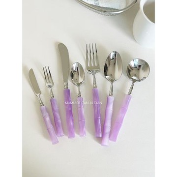 紫羅蘭亞克力304不銹鋼刀叉勺子套裝牛排西餐餐具高顏值叉子餐具