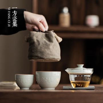 影青纏枝蓮旅行茶具便攜式戶外喝茶茶具隨身快客杯一壺兩杯簡約