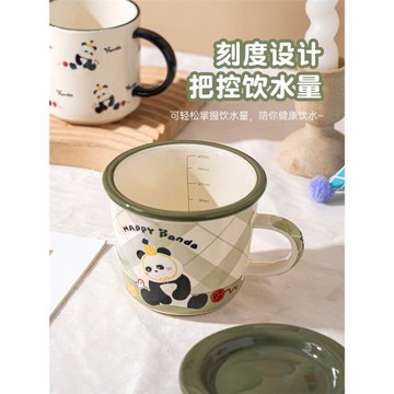 半宅可愛熊貓馬克杯學生辦公室牛奶卡通早餐兒童帶蓋情侶陶瓷水杯
