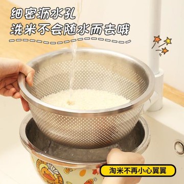 不銹鋼瀝水籃廚房家用淘米盆洗米篩洗菜籃子加厚漏盆密孔多用籃