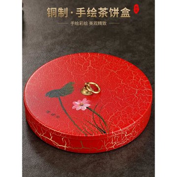 裕鴻銅制普洱茶餅收納盒茶葉罐帶蓋防潮茶罐密家用封存儲罐儲物盒