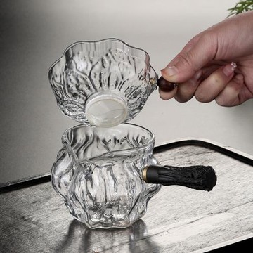 玻璃公道杯茶濾一體式帶茶漏側把分茶杯日式功夫茶過濾公杯帶手柄