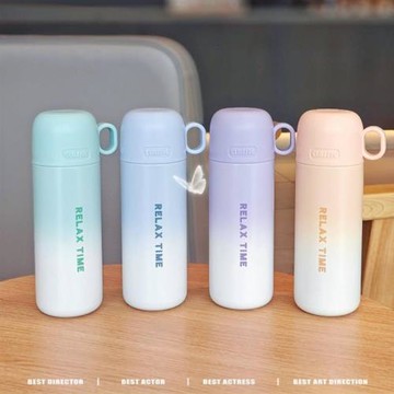 時尚漸變保溫杯女士學生便攜水杯簡約一蓋兩用不銹鋼純色字母杯子