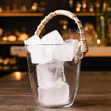 酒吧源創輕奢日式錘紋無鉛水晶玻璃刻花冰桶家用調酒香檳桶碎冰桶