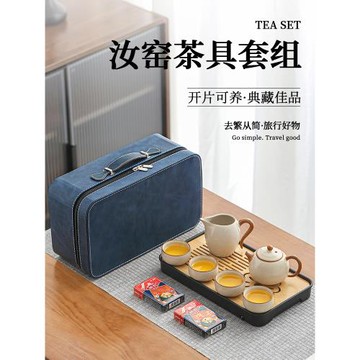 便攜式一壺四杯汝窯旅行茶具套裝2025新款出戶外摜蛋撲克牌收納包