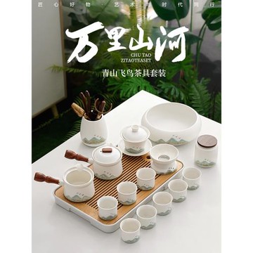 秦藝白瓷羊脂玉蓋碗功夫茶具套裝家用客廳輕奢高檔泡茶壺茶杯整套