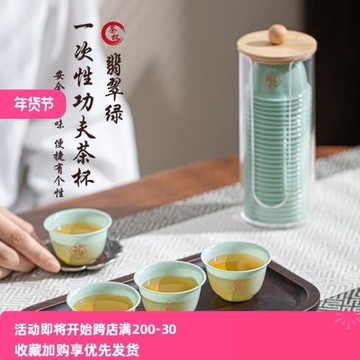 高檔翡翠綠一次性功夫茶杯加厚防燙喝茶小杯子商務待客品茗杯茶具