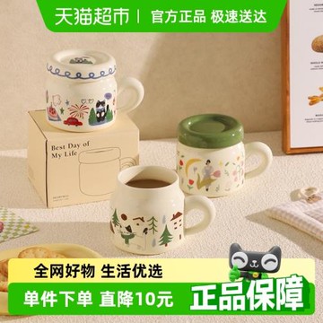 舍里可愛涂鴉陶瓷馬克杯帶蓋水杯辦公室女高顏值情侶對杯禮盒裝