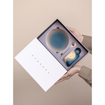 見山系列情侶對杯高級感咖啡杯紀念品禮物陶瓷茶咖杯水杯帶勺杯墊