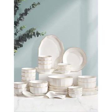 碗碟套裝家用輕奢金邊喬遷餐具碗筷組合高檔簡約碗盤創意陶瓷餐具