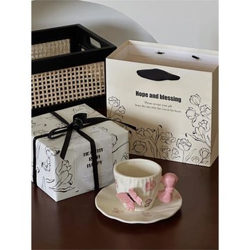 送女生禮物禮盒精致立體浮雕蝴蝶不規則陶瓷咖啡杯碟小眾伴手禮