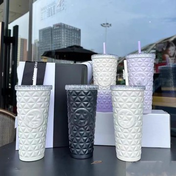 星星款591ml菱格紋304不銹鋼吸管杯黑白月光禮物款隨手保溫保冷杯