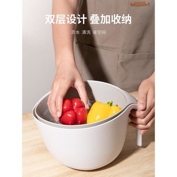 雙層洗菜盆瀝水籃家用廚房新款淘菜盆洗水果籃濾水神器客廳水果盤