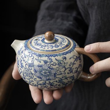 汝窯青花纏枝西施茶壺開片高檔家用泡茶壺功夫茶具中式茶水壺單壺