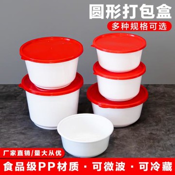 一次性打包盒食品級耐高溫塑料碗可微波紅色飯盒加厚圓形外賣餐盒