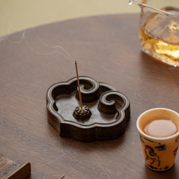 黑檀木如意香插托盤高級感香座茶寵禪意侘寂風茶道擺件線香香爐