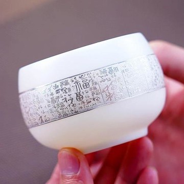 鄭文強羊脂玉鎏銀百福主人杯羅漢杯高檔個人專用茶杯送禮禮盒裝