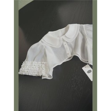 (免運)甜美少女洛麗塔白色可愛公主日韓半截超短上衣遮肉罩衫披肩小外搭