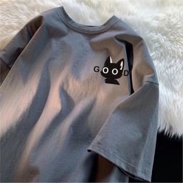 特大碼300斤美式vintage純棉貓咪短袖T恤男女休閑寬松情侶款上衣