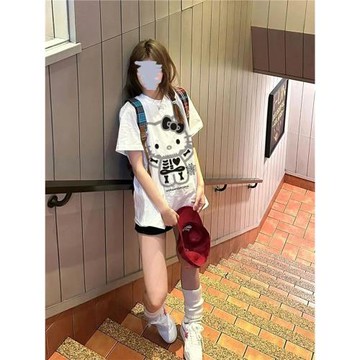 海外訂單外貿撤回尾貨~潮牌休閑KT貓印花純棉男女短袖T恤寬松上衣
