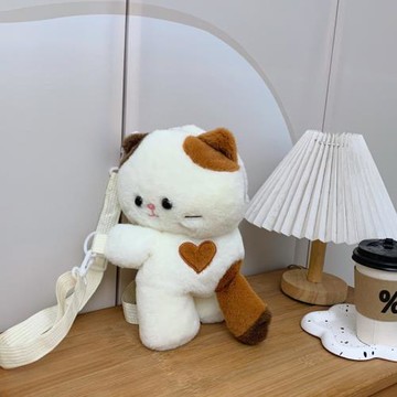三花小貓趴趴包斜挎包可愛毛絨玩偶雙肩包女孩生日禮物秋冬手機包