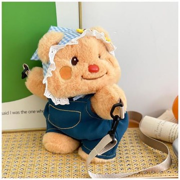 玩偶包跨境牛仔可愛黃油小熊毛絨斜挎包生日禮物公仔雙肩包包