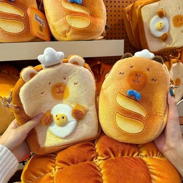 新款卡通毛絨水豚趣味斜挎包女可愛卡皮巴拉零錢手機包單肩包禮物