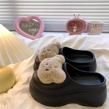 可愛黃油熊厚底鞋女2025春夏季半拖踩屎感舒適一腳蹬包頭拖鞋